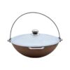 Ceaun WOK din aluminiu 4L, cu capac inclus. Ideal pentru gătit la foc deschis, aragaz sau camping, rapid și uniform.