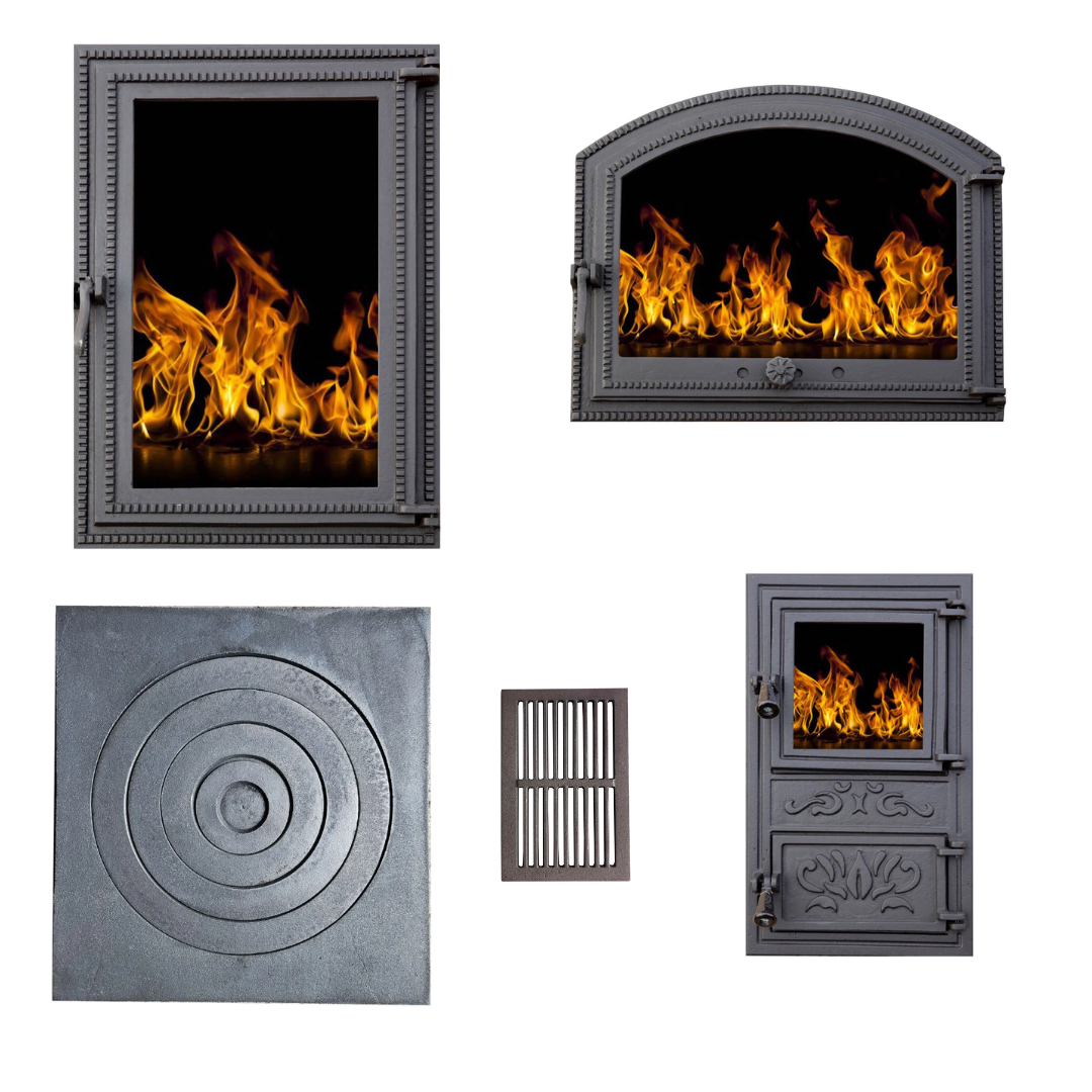 Pachet Foișor din Fontă – Ușă Cuptor + Ușă Afumătoare + Ușă Sobă + Plită + Grătar Cenușar